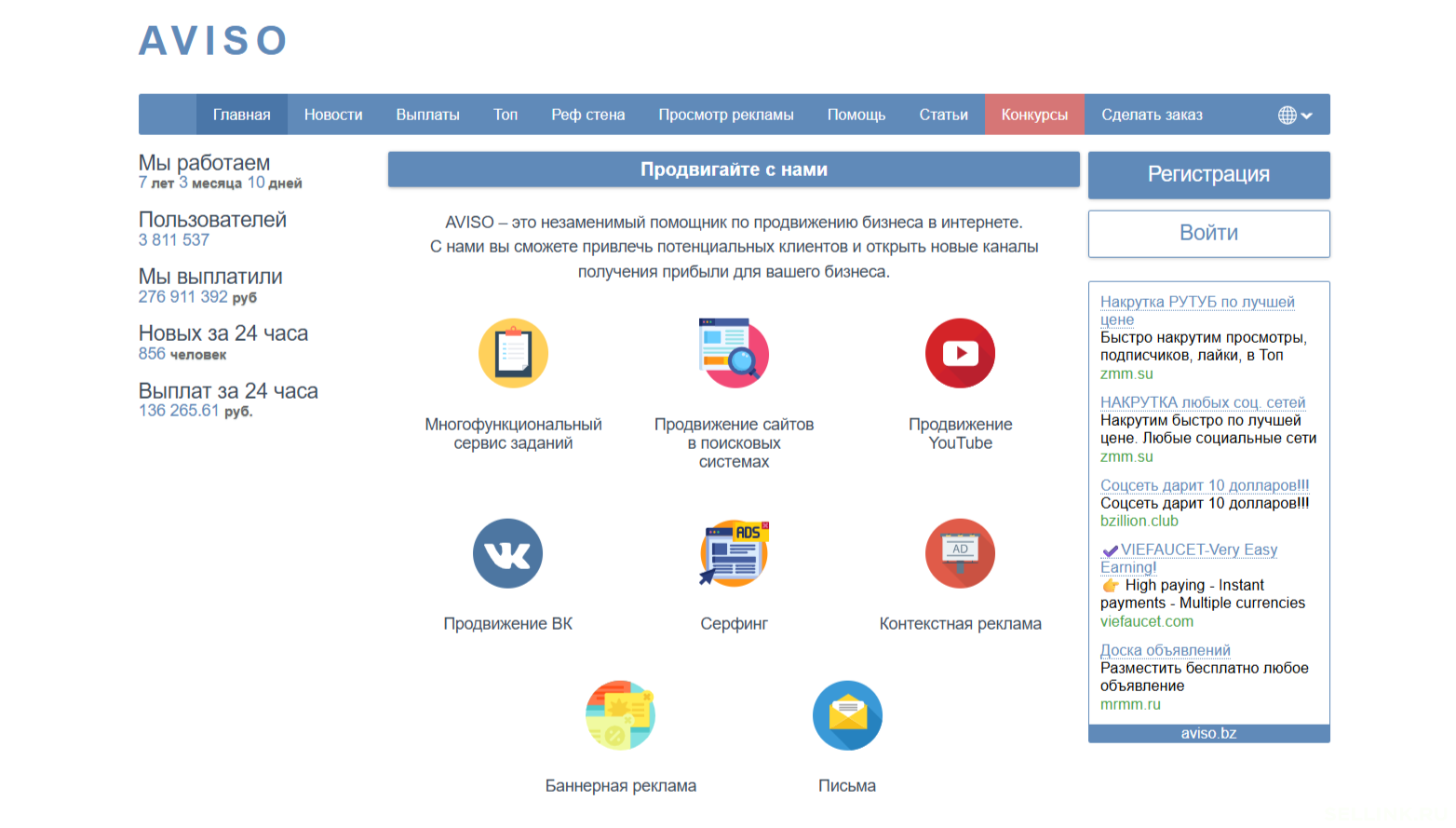 Aviso - заработок в интернете без вложений. Выполняйте простые задачи, смотрите видео, подписывайтесь на каналы и получайте за это оплату!